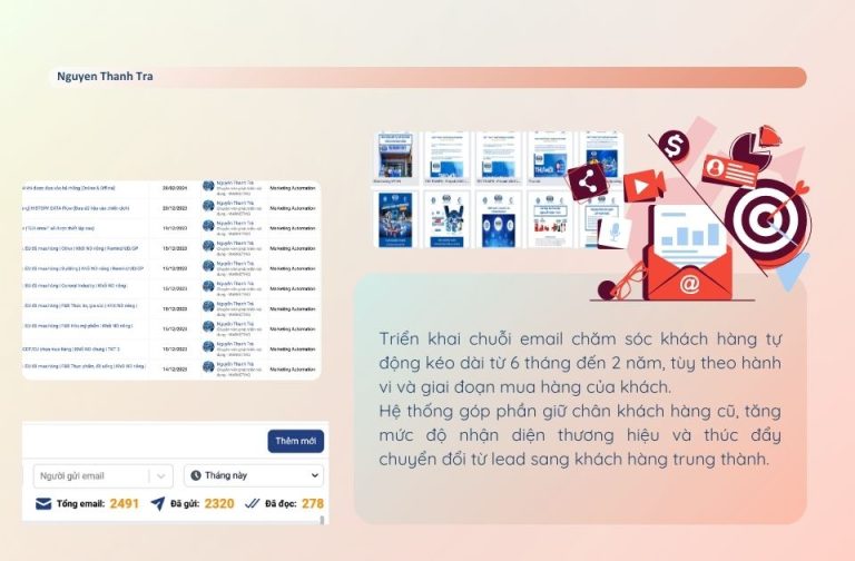 Vị trí: Phụ trách nội dung, hệ thống và vận hànhQuy mô: 800+ khách hàng doanh nghiệp (B2B)Kết quả nổi bật:✅ Tăng tỷ lệ mở email lên 35%✅ Góp phần vào việc tương tác vè giúp khách hàng quay trở…